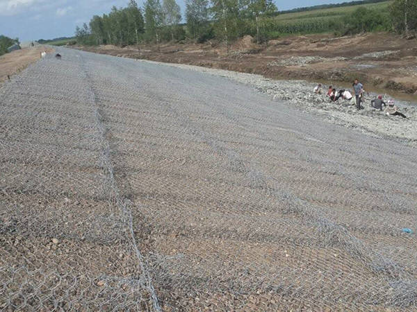 雷諾護(hù)墊也叫石籠護(hù)墊,格賓護(hù)墊,是指由機編雙絞合六邊形金屬網(wǎng)面構(gòu)成的厚度遠(yuǎn)小于長度和寬度的墊形工程構(gòu)件。雷諾護(hù)墊中裝入塊石等填充料后連接成一體,成為主要用于水利堤防、岸坡等的防沖刷結(jié)構(gòu),具有柔性、對地基適應(yīng)性的優(yōu)點。